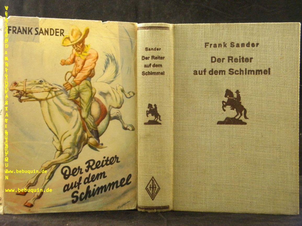 SANDER, Frank: Der Reiter auf dem Schimmel. Bremen (Burmester), 1935. 256 S. ill. OLn. mit OUmschl. Umschlag teils hinterlegt, NaV, feines Ex. = Burmester’s Abenteuer – Serie.