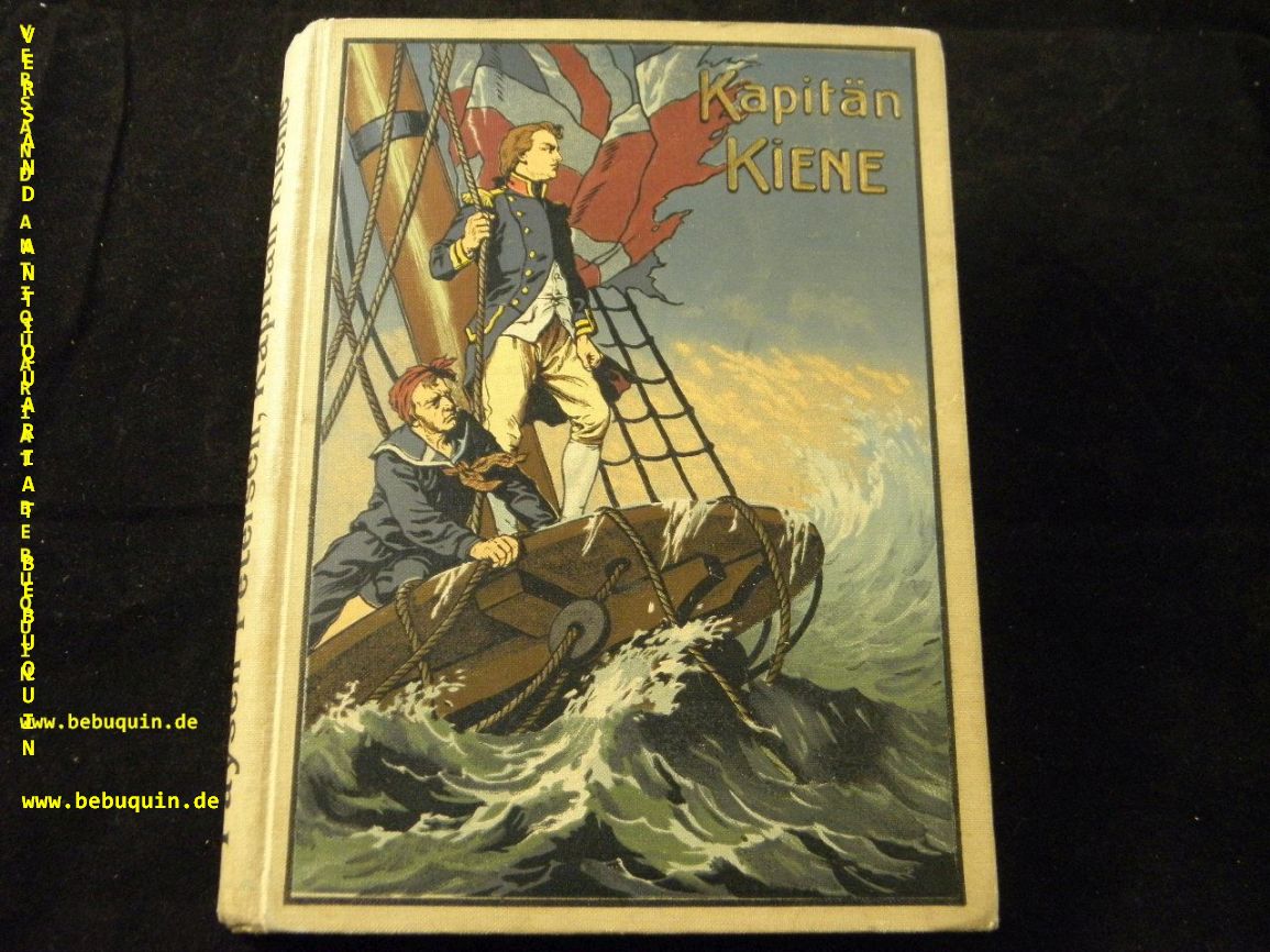 PAYSEN PETERSEN, Georg: Kapitän Kiene. Nach einer Erzählung des Kapitäns Marryat für die deutschge Jugend bearb. Stuttgart (Loewe), (1910). 149 (3) S. mit 12 farb. Tonbildern von H. Grobet. farb. ill. OLn. Rückdeckel und Rückseite des Titelsbildes angeschmutzt, sonst gutes Ex. EA Klotz 5333/7.