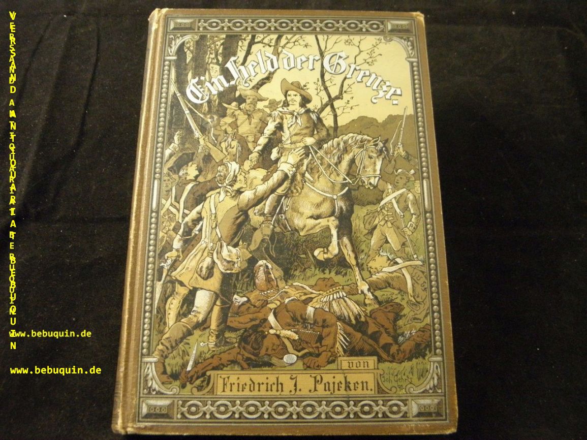 PAJEKEN, Friedrich J.: Ein Held der Grenze. Eine Erzählung aus dem Westen Nordamerikas . Nach geschichtlichen Grundlagen für die reifere Jugend frei bearbeitet. 2. Aufl. Leipzig (Hirt), 1893. Gr. 8°. 192, 16 S. mit Abb. nach Zeichnungen von Joh. Gehrts. reich verziertes OLn. Im Jahr der EA. Klotz 5284/9.