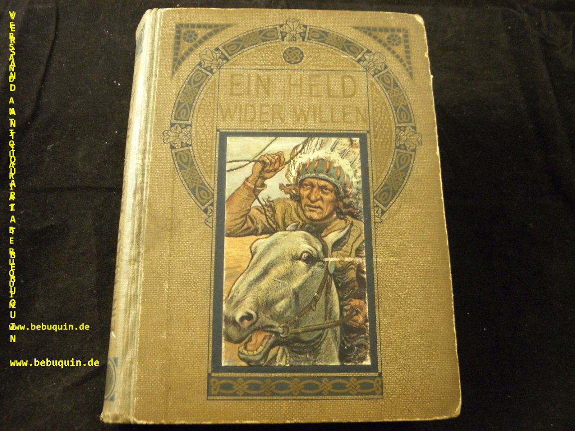 PAJEKEN, Friedrich J.: Ein Held wider Willen. Eine Erzählung aus dem Westen Nordamerikas füpr doe reifere Jugend.. Berlin (Meidinger), (1904). Gr. 8°. 238 S. mit 5 Bildtafeln von Max Wulff. farb. ill. OHLn. Einband etwas gebräunt, Vorsatz mit Einriss, insgesamt gut. EA. Klotz 5284/11.