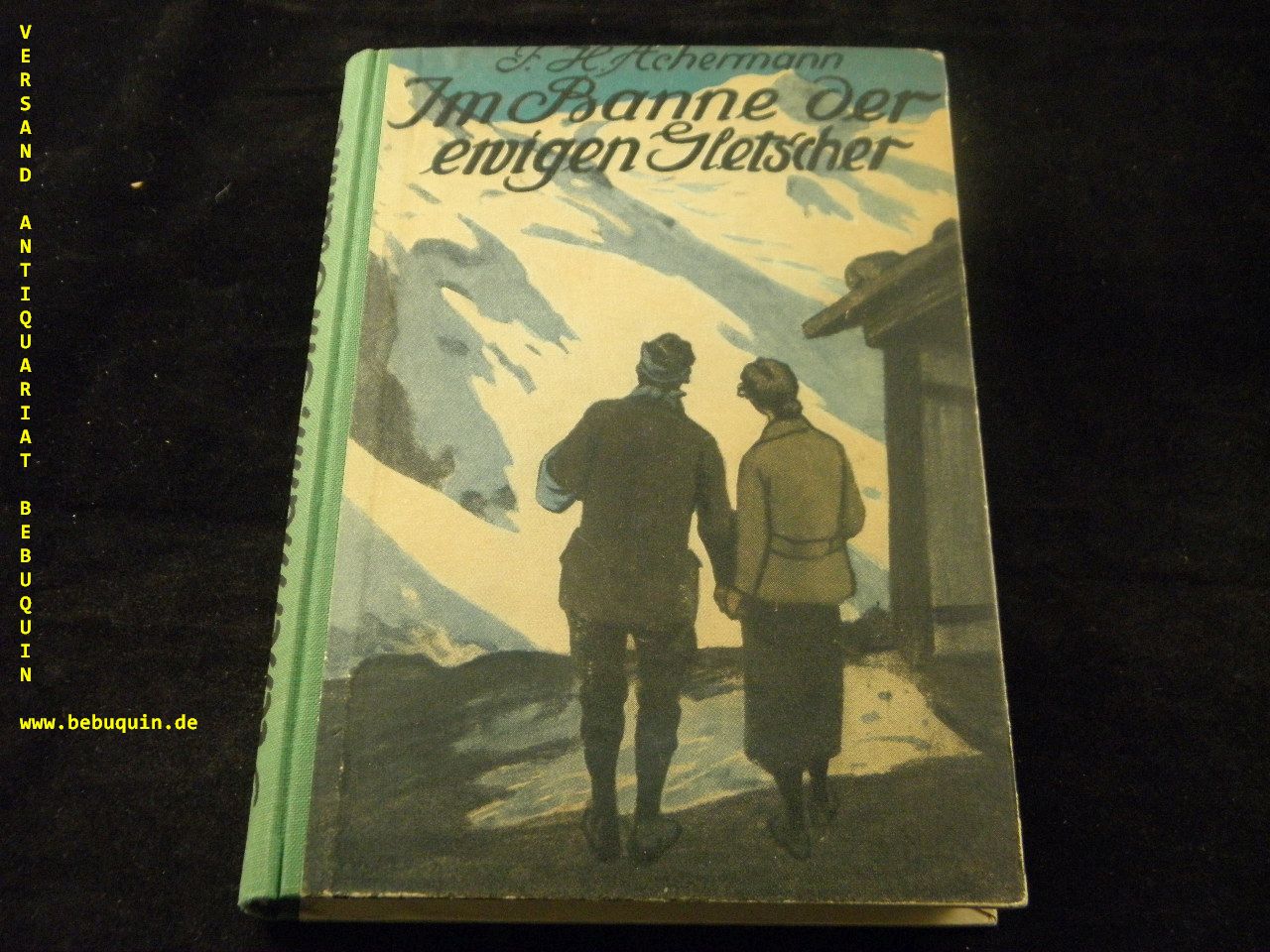 ACHERMANN, F.H.: Im Banne der ewigen Gletscher. 4.– 8. Tsd. Olten (Walter), 1923. 163 S. ill. OHLn. von Willy Planck. Ex libris Reste auf Innendeckel, sonst schönes Ex. Titel des als Schweizer Karl May bezeichneten Schriftstellers.