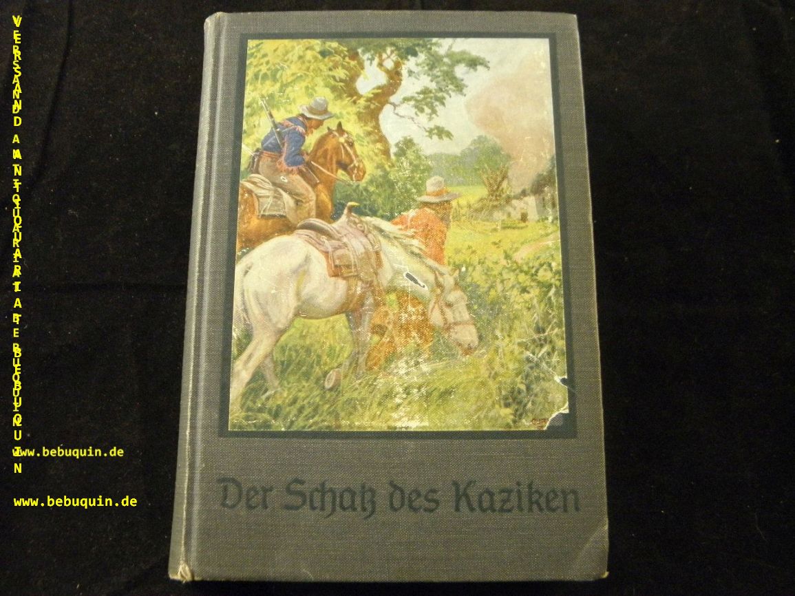BARFUS, Eginhard von: Der Schatz des Kaziken. Abenteuer und Kämpfe eines jungen Deutschen mit den Desperados im fernen Westen. Berlin (Jugendhorst), ca 1910. 174 S. mit 4 Tonbildern von Curt Schulz. farb. ill. OLn. Einband etwas berieben.