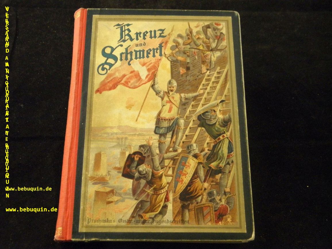 ZÖHRER, Ferdinand: Kreuz und Schwert. Historische Erzählung aus den zeiten der Kreuzzüge. Wien (Prochaska), (1889). 179 S. mit 4 Vollbildern. farb. ill. OHLn. NaV, Gelenke etwas gelockert, sonst gut erhalten. EA. Klotz 8646/11.