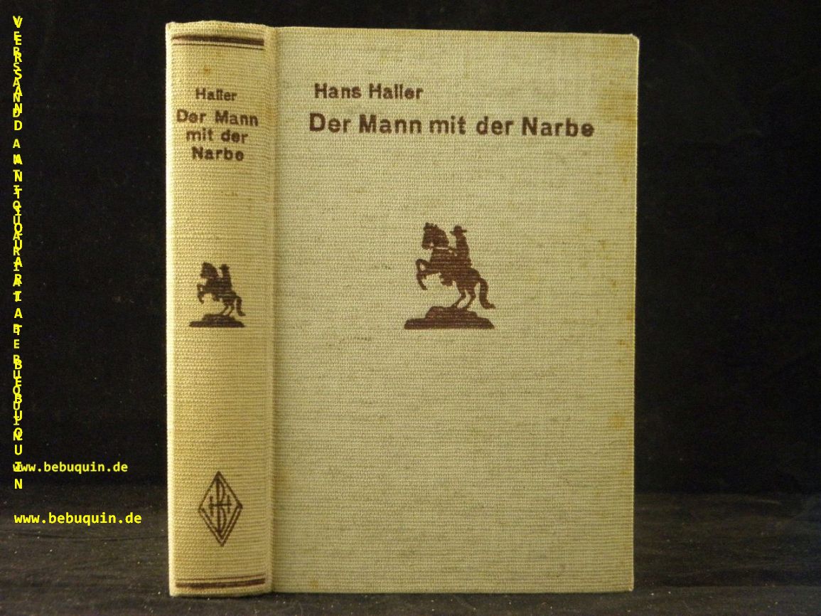 HALLER, Hans: Der Mann mit der Narbe. Bremen (Burmester), (1938). 256 S. ill. OLn. feines Ex. = Burmester’s Abenteuer – Serie. EA. Schegk / Wimmer S6.