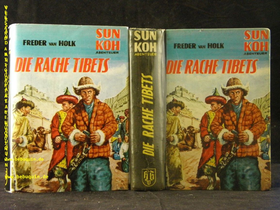 SUN KOH.– HOLK, Freder van: Die Rache Tibets. Abenteuer-Roman. Münster (Borgsmüller), ca 1958. 264 S. OHLn mit OUmschl. gestempeltes Leihbuch, gutes Ex. EA.