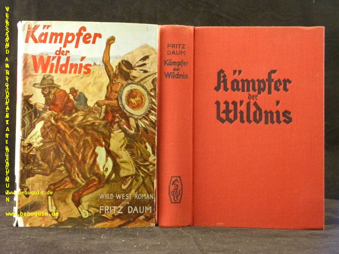 DAUM, Fritz: Kämpfer der Wildnis. Wild-West-Roman. Berlin (Uhlmann), 1937. 261 (3) S. roter OLn. mit OUmschl. Umschlag aufgezogen, aber weitestgehend gut erhalten. = Uhlmann – Bücher. EA.
