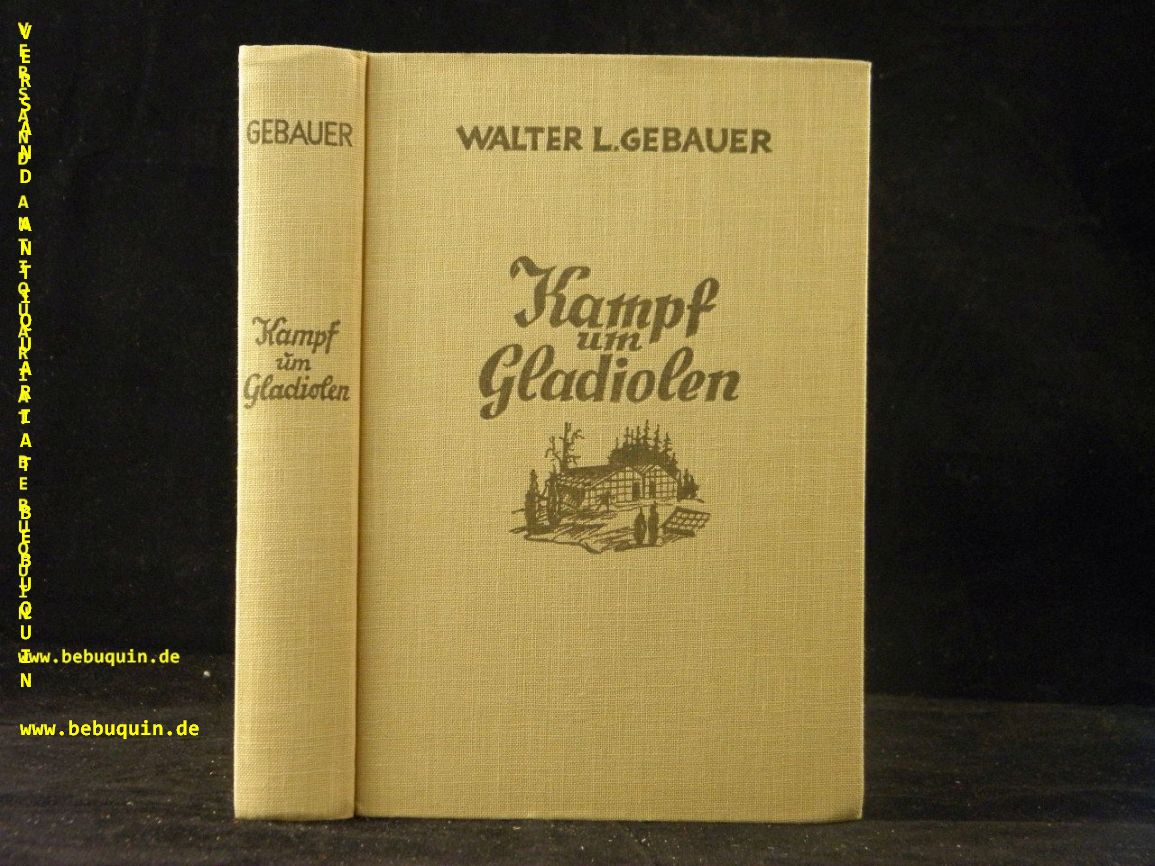GEBAUER, Walter L.: Kampf um Gladiolen. Kriminalroman. Leipzig (Rothbarth), 1938. 240 S. ill. OLn. NaV, gutes Ex. EA. Schädel 2627.