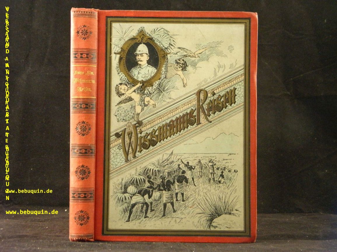 KOLONIEN.– ELM, Hugo: Wißmanns Reisen durch Afrika. Der deutschen Jugend erzählt. Berlin (Norddeutsches), (1890). Gr. 8°. IV, 205 S. mit einem Portrait Wißmanns als Frontispiz, 5 Illustrationen von J. Schlattmann + 1 doppelseitige, farb. Karte. ill. OLn. feines Ex. EA Wegehaupt 787; Klotz 1253/14..