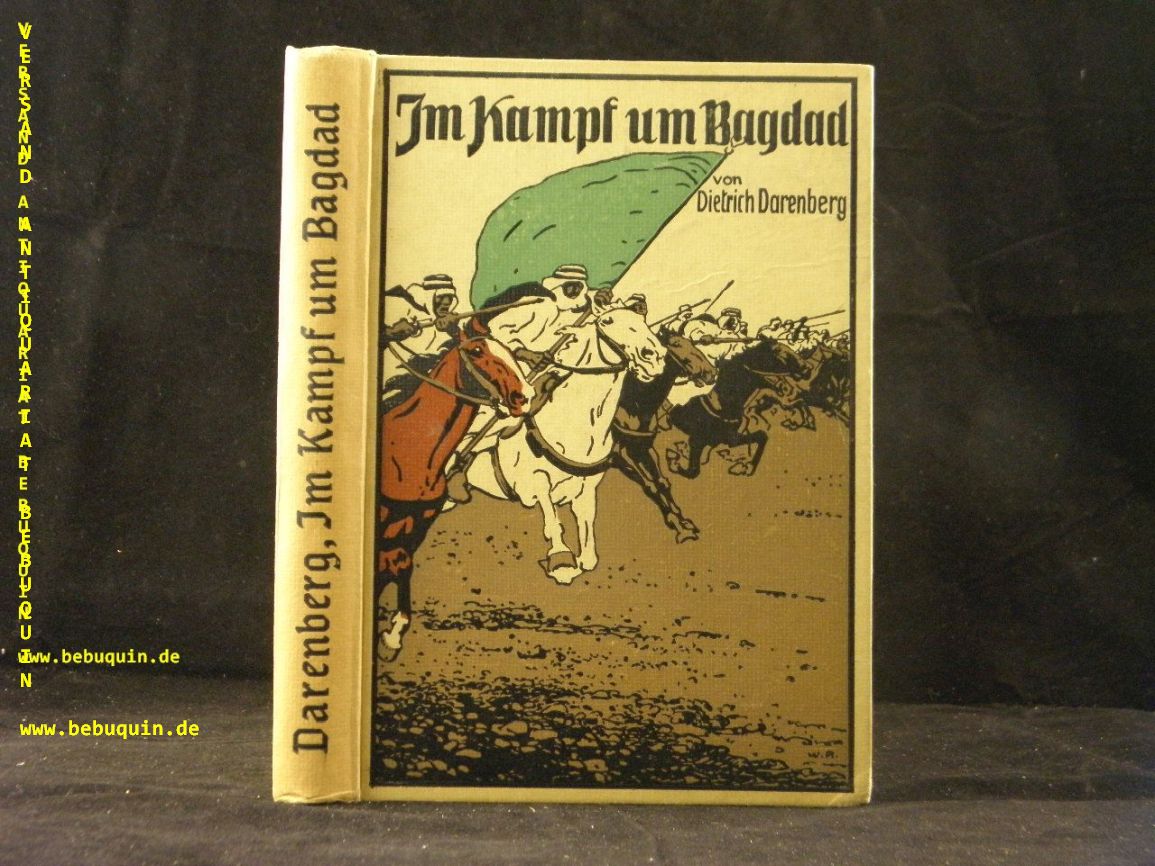 DARENBERG, Dietrich: Im Kampf um Bagdad. Eine Erzählung für die Jugend aus dem Weltkrieg. Stuttgart (Levy & Müller), (1917). Gr. 8°. 227 (5) S. mit 6 Vollbildern von Wily Planck und einer Karte farb. ill. OPb. kaum gelockert, sehr feines Ex. EA Klotz 983/2.