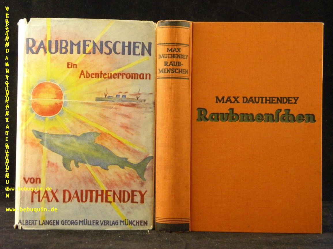 DAUTHENDAY, Max: Raubmenschen. Ein Abenteuerroman. 21.– 25. Tsd. München (Langen / Müller), 1911. 381 (2) S. OLn mit OUmschl. gutes Ex.
