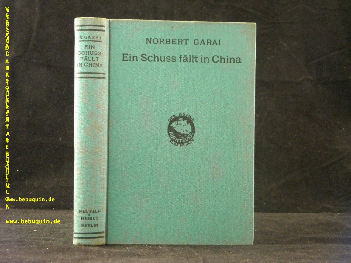 GARAI, Norbert: Ein Schuß fällt in China. Abenteuerroman. Berlin (Neufeld & Henius), 1932. 224 S. OLn mit Schwarzprägung. tadellos. = der Grüne Abenteuer-Roman. EA.