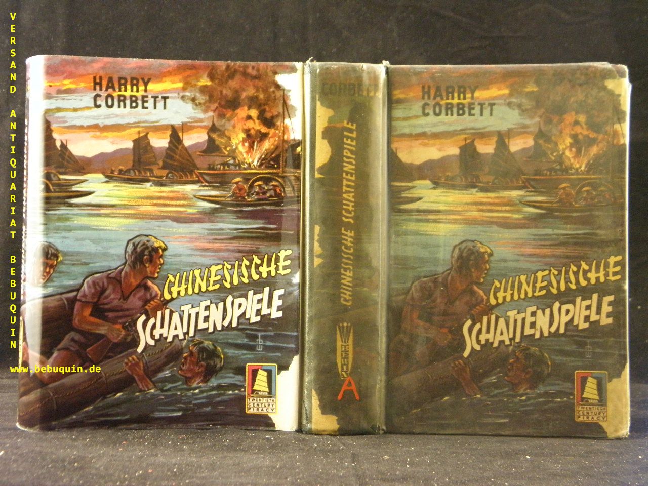 CORBETT, Harry: Chinesiche Schattenspiele. Piratenroman. Menden (Bewin), 1956. 256 S. farb. ill. OHLn mit OUmschl. gestempeltes Leihbuch. EA.