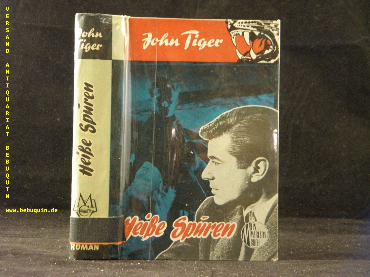 JOHN TIGER: Heisse Spuren. Kriminalroman. Münster (Merceda), ca 1950. 253 (1) S. farb. ill. OPb. gestempeltes Leihbuch. EA.