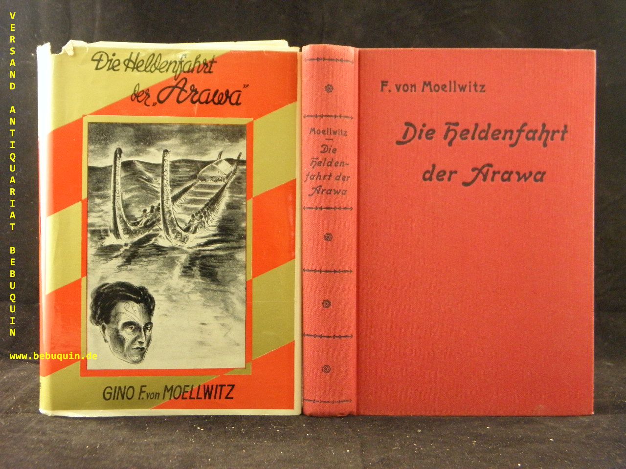 MÖLLWITZ, Gino F. von: Die Heldenfahrt der Arawa. Eine Südseegeschichte. Berlin (Geisel), 1935. 222 (2) S. OLn. mit OUmschl. Umschlag minimal an einer Ecke lädiert, sonst tadellos. = Geisel – Bücher 2. seltene EA.
