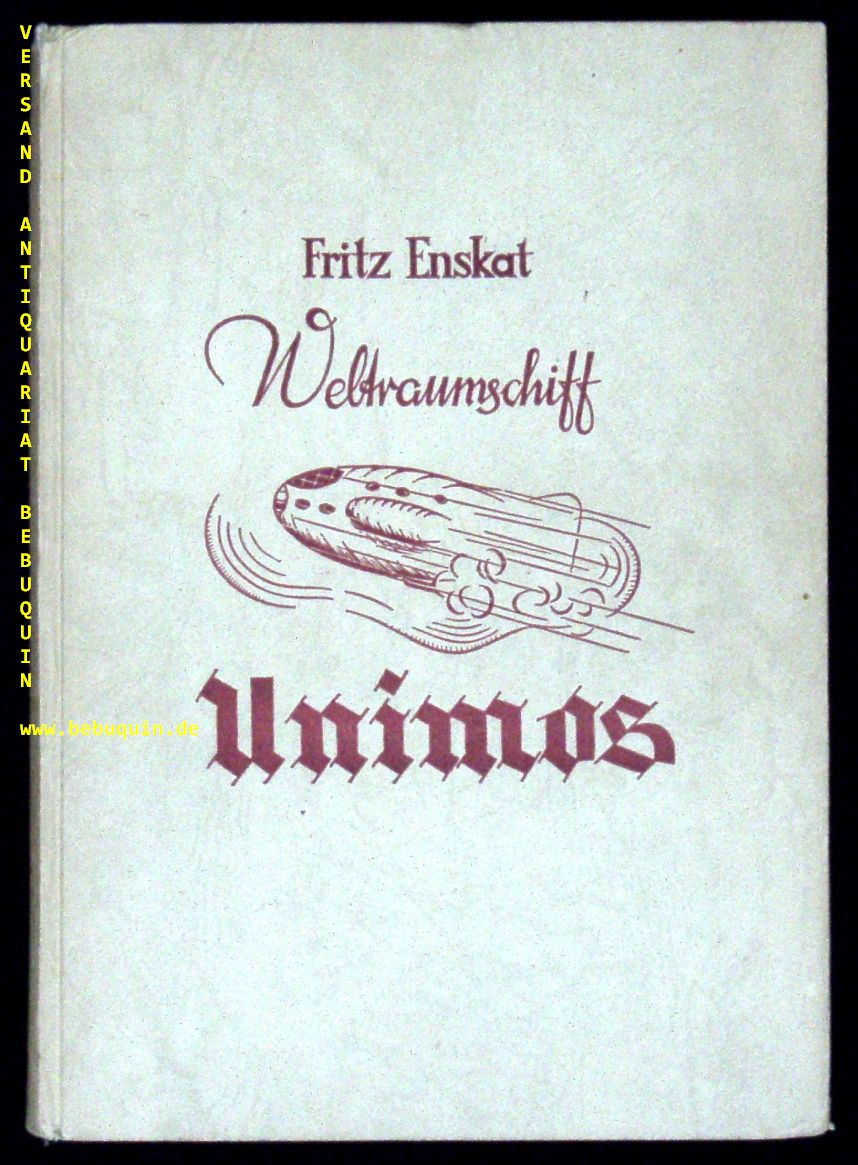 CATSEN.– ENSKAT, Fritz: (d.i. Freder Catsen) Weltraumschiff Unimos. Ein technisch-phantastischer Zukunftsroman. Berlin (Frommhagen), (1941). 179 S. ill. OPb. WaV, feines Ex. 1. Aufl. dieser Ausagbe und unter diesem Titel.