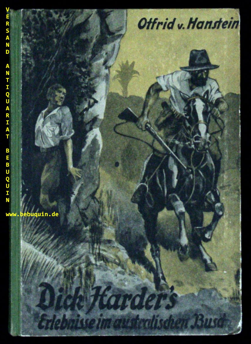 HANSTEIN, Otfrid von: Dick Harders Erlebnisse im australischen Busch. Berlin (Franke), 1929. 158 S. mit 1 farb. Titelbild + zahlr. Textbildern von Albert Erbert. farb. ill. OHLn. fliegender Vorsatz fehlt, sonst gut erhalten. EA Klotz 2329/6.