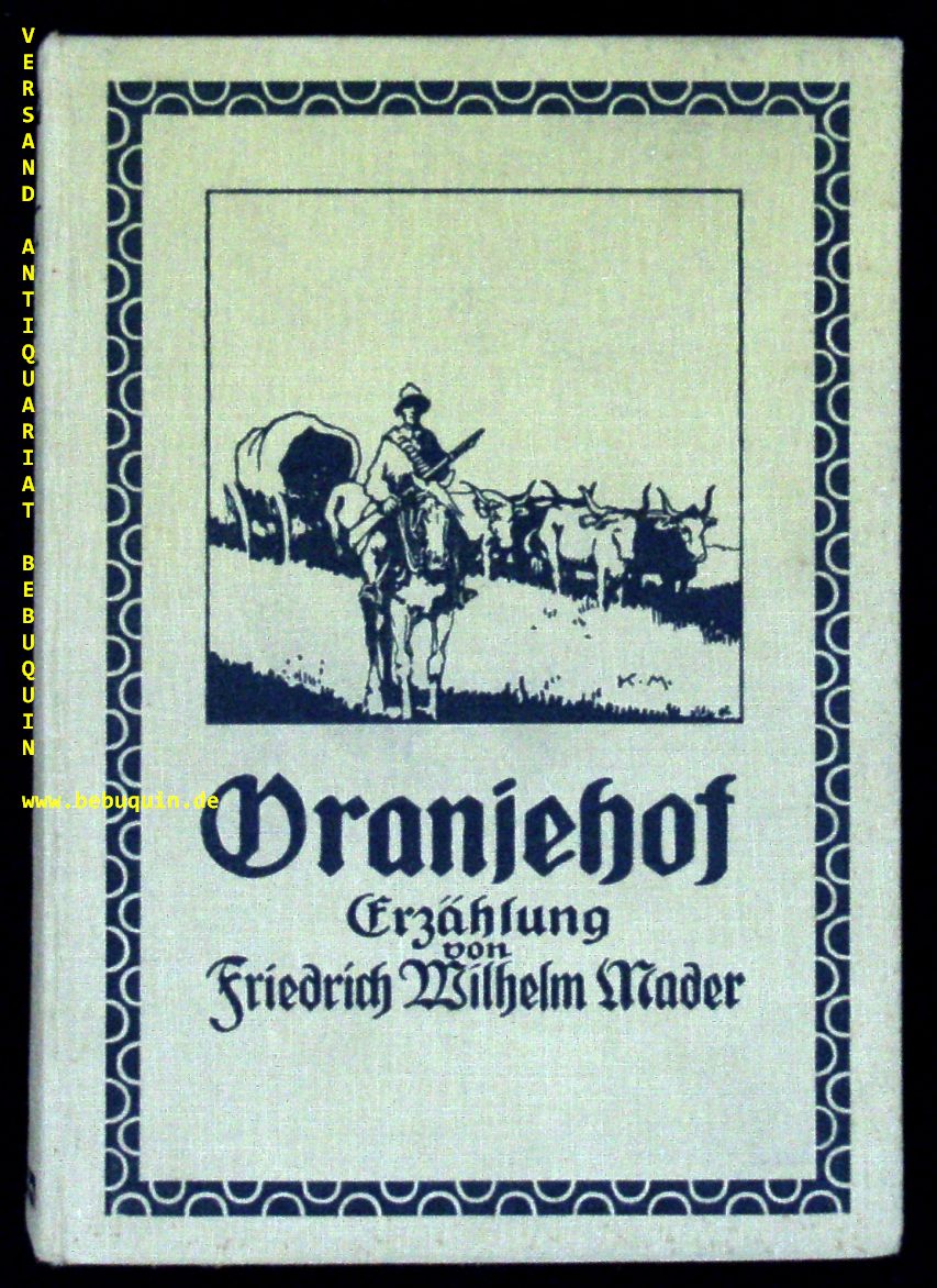 MADER, Friedrich Wilhelm: Oranjehof. 8. Aufl. Stuttgart (Union), ca 1925. VII, 317 S. mit 1 farb. Titelbild + 8 Tondruckbildern von Karl Mühlmeister. ill. OHLn. Titellage gelockert Klotz 4337/38.