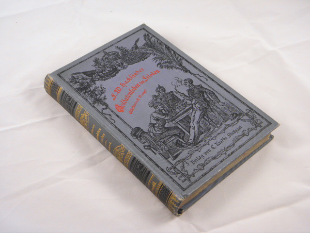 HACKLÄNDER, F.W.: Feuerwerker Wortmann und andere Soldatengeschichten. Stuttgart (Krabbe), 1884. 160, 46 S. mit 134 Illustrationen von Emil Rumpf. ill. OLn. EA WG² 71. Mit eingebunden: Das Soldatenleben im Frieden. 266 S. mit 190 Illustrationen von Emil Rumpf und einem farblithogr. Titelbild. 6. Aufl.