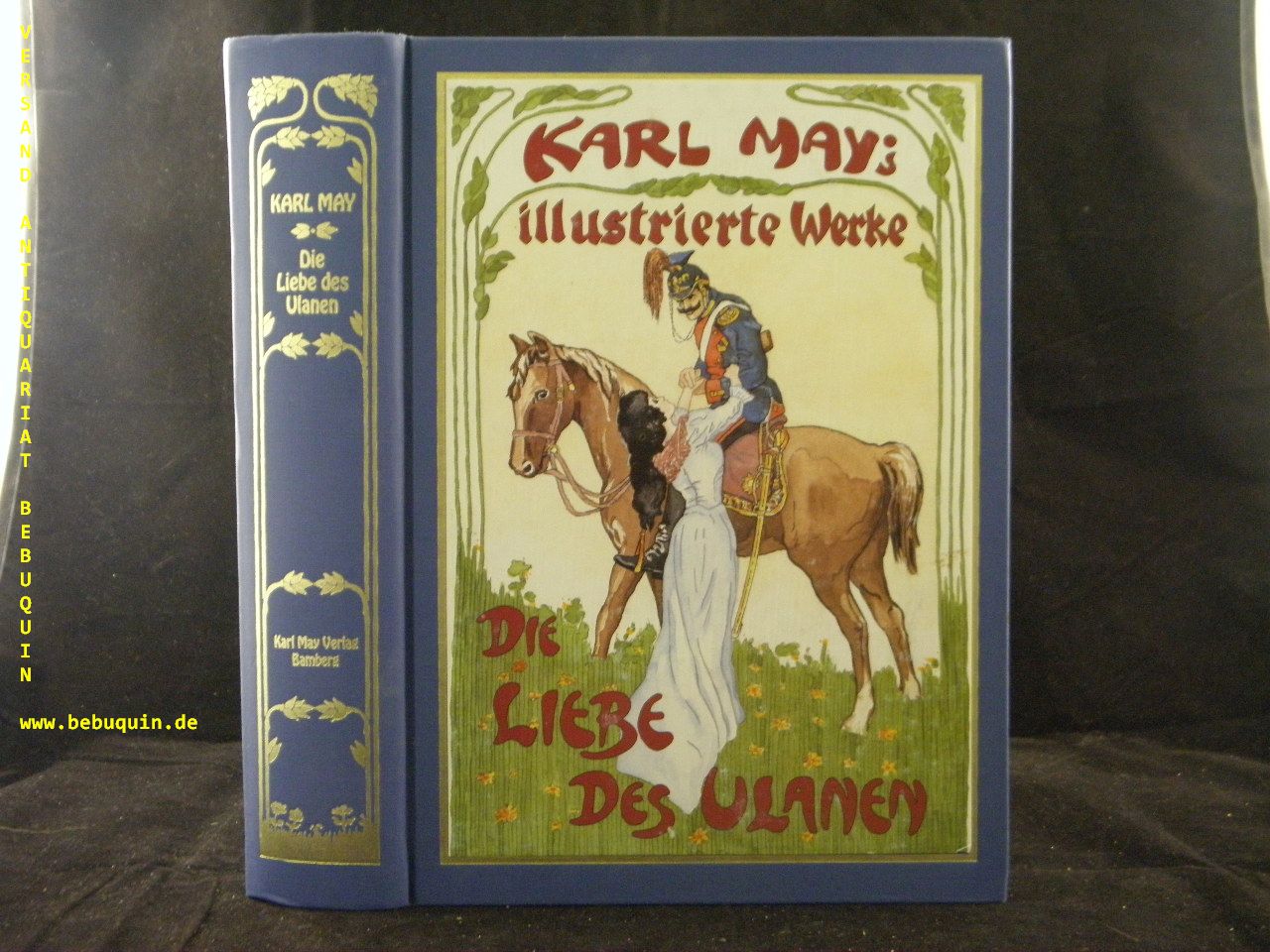 MAY, Karl: Die Liebe des Ulanen. Reprint der Erstveröffentlichung von 1883-1885. Mit einem Nachwort zur Werkgeschichte. Hier die Luxusausgabe! Bamberg (Karl May), 1993. 4°. 932 + 11 S. mit Textabbildungen und Bildtafeln aus der späteren „Neuen illustrierten Ausgabe“ des Münchmeyer-Verlags. OLn mit mont. Farbbild. sehr gut erhalten.