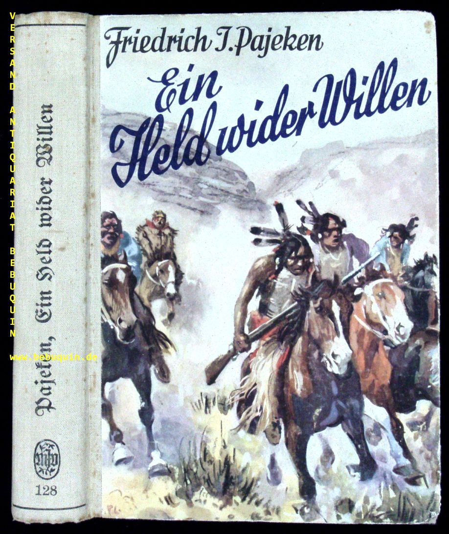 PAJEKEN, Friedrich J.: Ein Held wider Willen. Eine Erzählung aus dem Westen Nordamerikas. Berlin (Meidinger), (1933). Gr. 8°. 238 S. mit farb. Bildtafeln von Max Wulff. farb. ill. OHLn. gutes Ex. 1. Aufl. dieser Ausgabe. Klotz 5284/11. Selten.