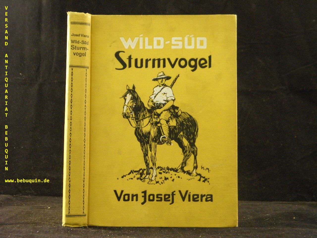 KOLONIEN.– VIERA, Josef: Sturmvogel. Abenteuer in Wild-Süd. Reutlingen (Enßlin & Laiblin), (1927). 208 S. mit zahlr. getönten Textabb. + 4 Farbtafeln von Karl Mühlmeister. farb. ill. OLn. etwas schief gelesen, WaV. EA. Klotz 7713/93.