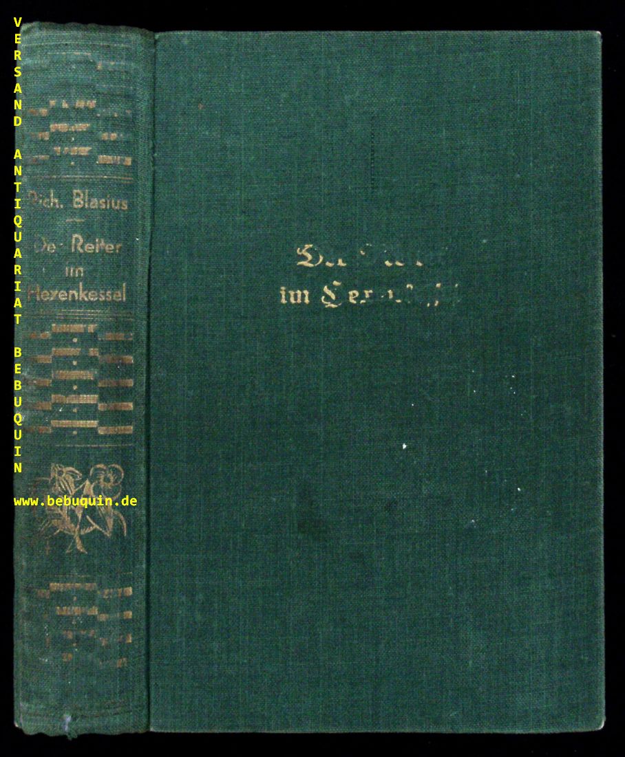 BLASIUS, Richard: Der Reiter im Hexenkessel. Leipzig (Weise), (1931). 348 S., 17 Bl. OLn. Einbandschrift teils abgeblättert, WaV, insgesamt noch gut erhalten. EA. Klotz 521/16.