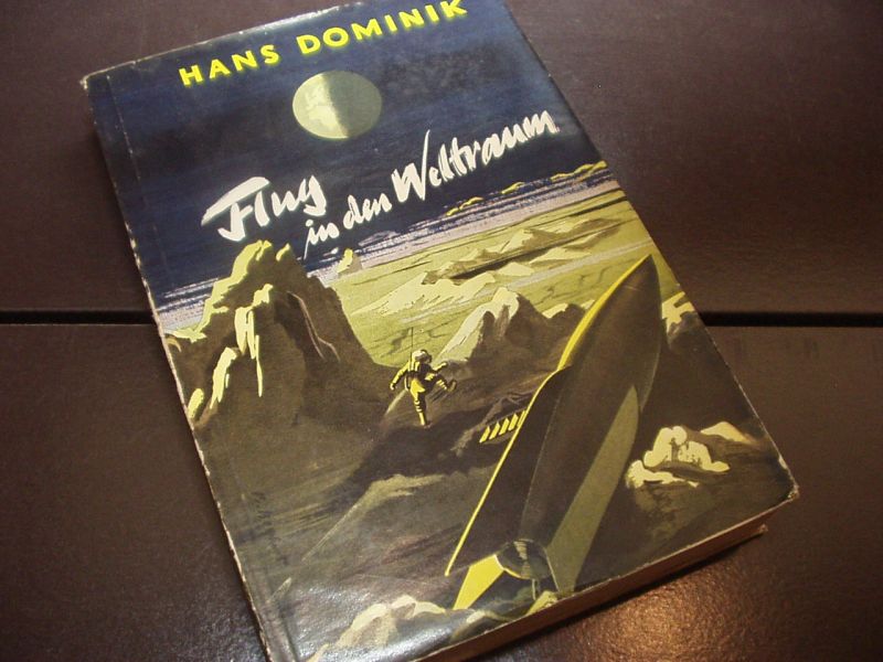 DOMINIK, Hans: Flug in den Weltraum. (Treibstoff SR). Berlin (Gebrüder Weiss), (1949). 325 (2) S. OLn mit OUmschl. Umschlag etwas lädiert. 1. Aufl. dieser Ausgabe. Bloch 774.