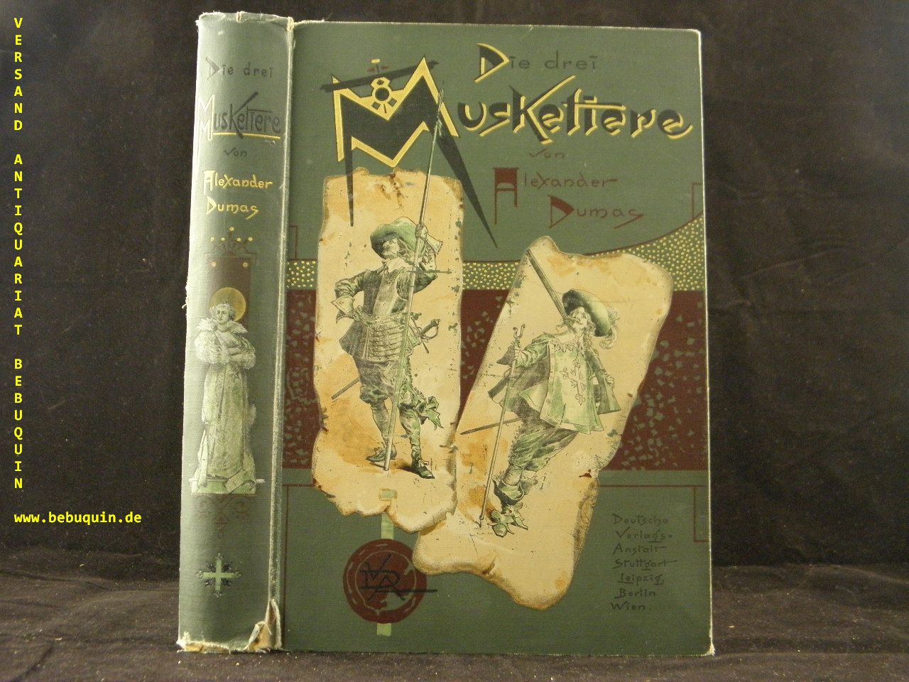 DUMAS, Alexander: Die drei Musketiere. Mit einem Briefe voin Alexander Dumas dem Jüngeren. Stuttgart (DVA), ca 1900. 4°. XI, 590 (2) S. mit zahlr. Illustrationen von Maurice Leloir. farb. ill. OLn. unteres Kap etwas angeplatzt, NaV, NaT, sonst schönes Ex.