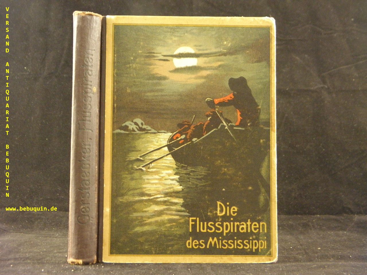 GERSTÄCKER, Friedrich: Die Flußpiraten des Mississippi. Für die Jugend neu bearb. von Karsten Brandt. Stuttgart (Loewe), (1907). 156 S. mit 4 Buntbildern von H. Grobet. ill. OHLn. KJanten berieben, Rückdeckl bestaubt, WaV. 1. Aufl. dieser Ausgabe. Klotz (Brandt) 640/1.