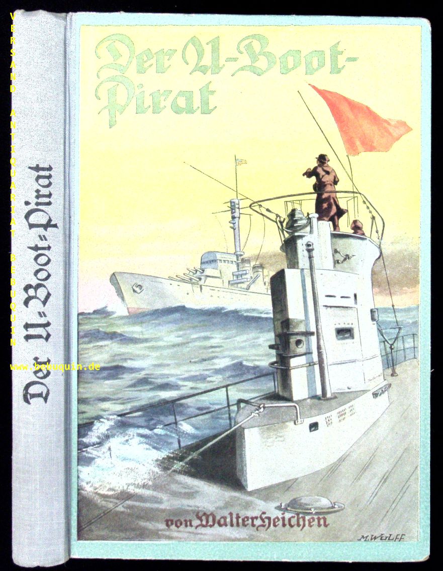 HEICHEN, Walter: Der U-Boot-Pirat. Eine phantastische Geschichte für die Jugend. Berlin (Weichert), (1929). 159 (1) S. mit 2 farb. Vollbildern von M. Wulff. farb. ill. OHLn. sehr feines Ex. EA Alpers 532; Klotz 2433/55.