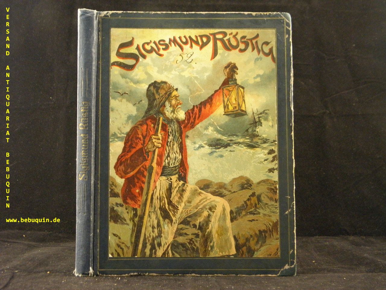 MARRYAT: Sigismund Rüstig. Eine Robinsoande. Für die Jugend bearb. von Max Pannwitz. 10. Aufl. Stuttgart (Loewe), (1913). 4°. III, 123 S. mit 6 Farbendruckbildern und 25 Textabb. von Fritz Bergen. farb. ill. OHLn. Kanten etwas bereiben, Vorsätze gebräunt, NaV. Pracht-Ausgabe. Klotz 4424/161.