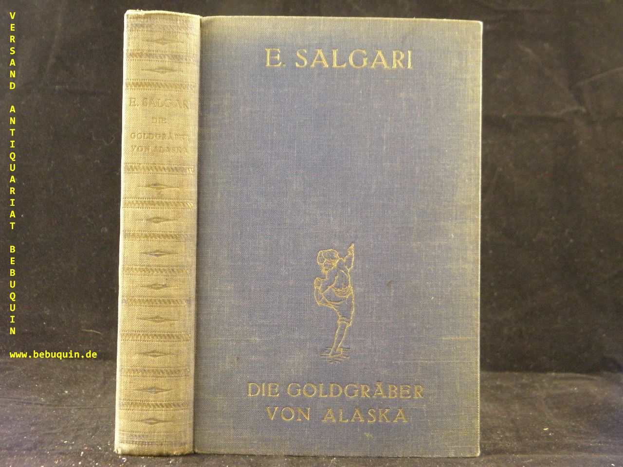 SALGARI, Emilio: Die Goldgräber von Alaska. Abenteuerroman. D.v. K. Heinz Hellwig. Berlin (Phönix), (1934). 270 (2) S. mit 1 Titelbild. blaues ill. OLn. Rücken geblichen, NaV, vorderes Gelenk leicht gelockert. dt. EA Klotz 6118/9.