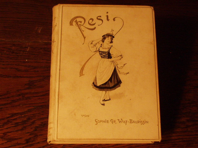 WOLF-BAUDISSIN, Sophie Gräfin: (s.u. Aurelie) Resi. Eine Erzählung für junge Mädchen. Stuttgart (Thienemann), (1897). 191 S. mt 30 Textbildern von A. Wald. ill. OLn mit Goldprägung. etwas fleckig, beigegebener Schuber etwas lädiert. Vergl. mit Klotz 188/28.
