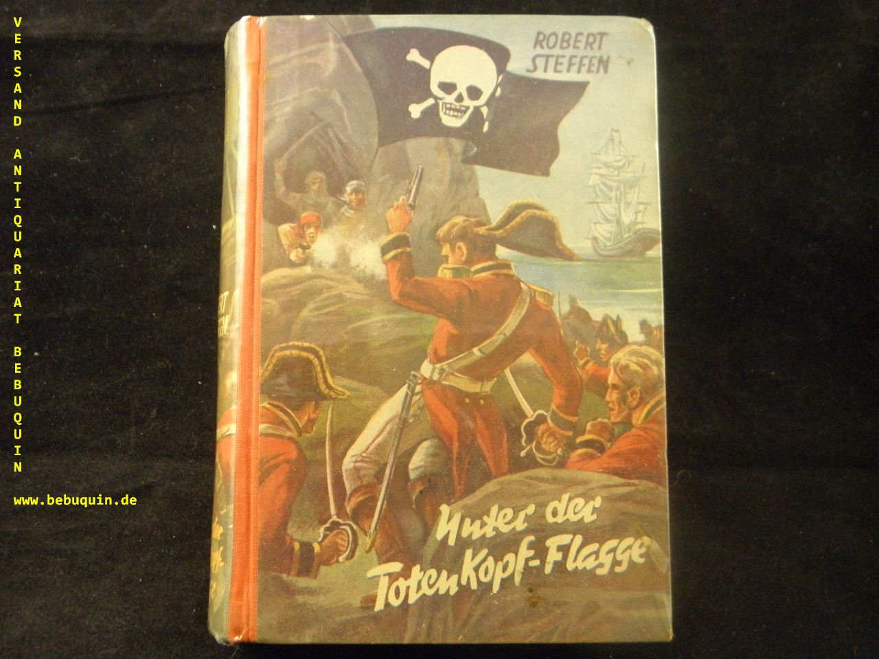 STEFFEN, Robert: Unter der Totenkopf-Flagge. Piraten-Roman. Balve (Hönne), 1954. 272 S. farb. ill. OHLn. gestempeltes Leihbuch. EA.