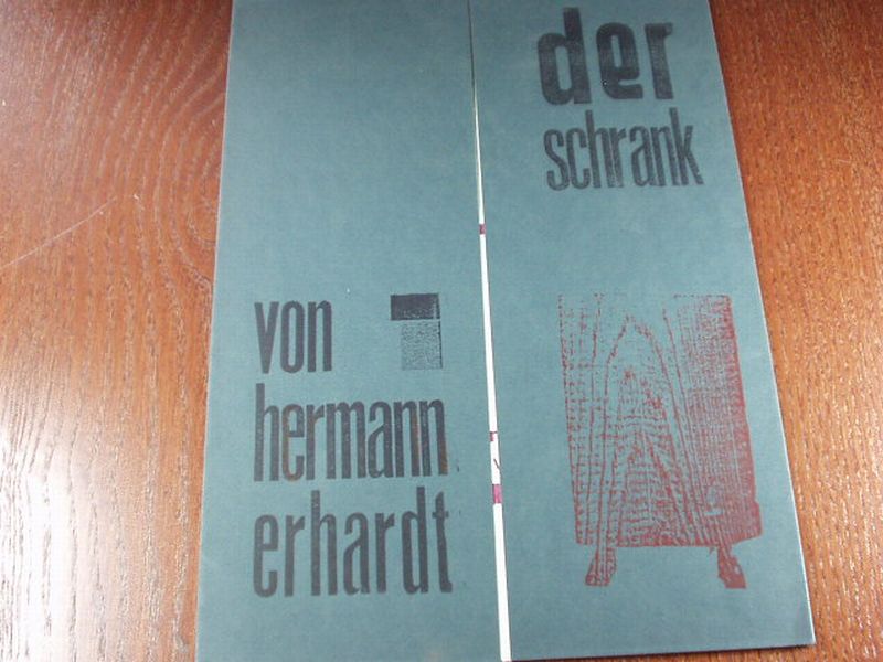 PRESSENDRUCKE.– ERHARDT, H.: Der Schrank. Eine Groteske. (Weimar) (Mechold), 1991. 4°. 2 Bl. und inliegend 1 signierte Originallinolschnitt von Th. Mechold. ill. OMappe wie ein Schrank aufklappbar. Nr. 7 von 60 nummerierten Exemplaren dieser einzigen Auflage.