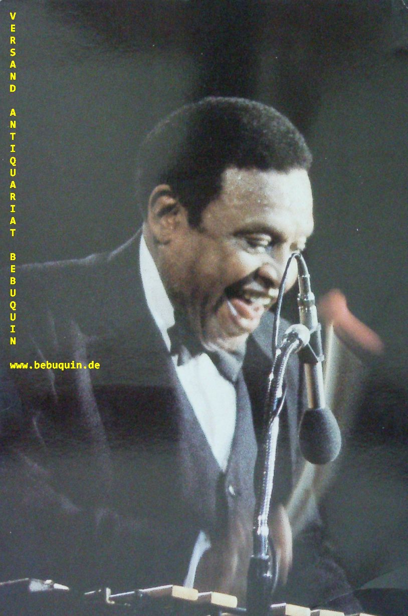 JAZZ.– HAMPTON, Lionel (Vibraphonist): eigenhändig rückseitig signierte und datierte Farb-Postkarte. München, 7.5.1989. 23 x 15 cm. großer Auschnitt mit Halbtotale. unsigniertes Doppel liegt bei.