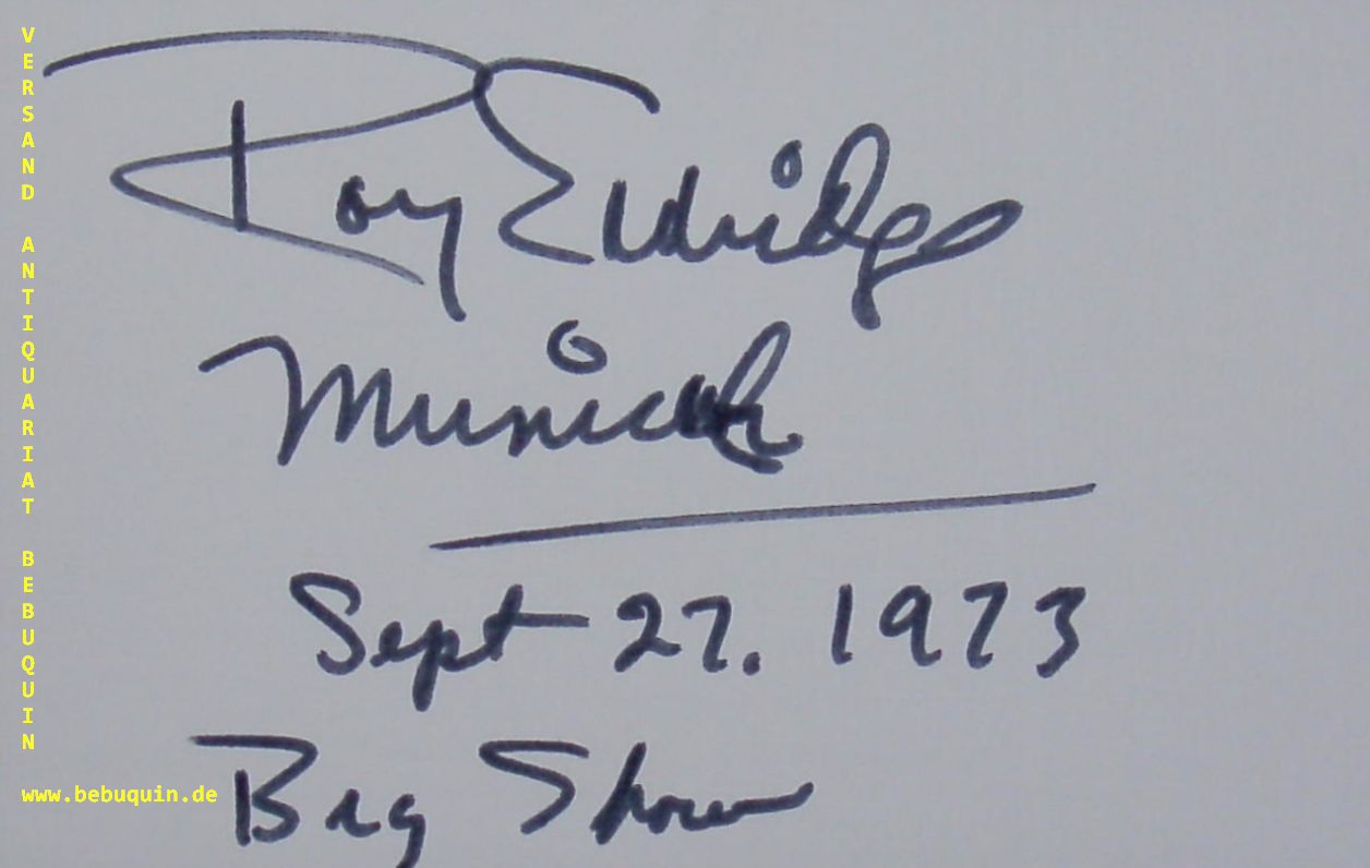 JAZZ.– ELDRIDGE, Roy (Trompeter): eigenhändig signierte und datierte Autogrammkarte. München, 22.9.1973. 8 x 12,5 cm. Karteikarte. David Roy „Little Jazz“ Eldridge (* 30. Januar 1911 in Pittsburgh, Pennsylvania; † 26. Februar 1989 in Valley Stream, New York) war einer der bedeutendsten US-amerikanischen Jazztrompeter. (Wikipedia)