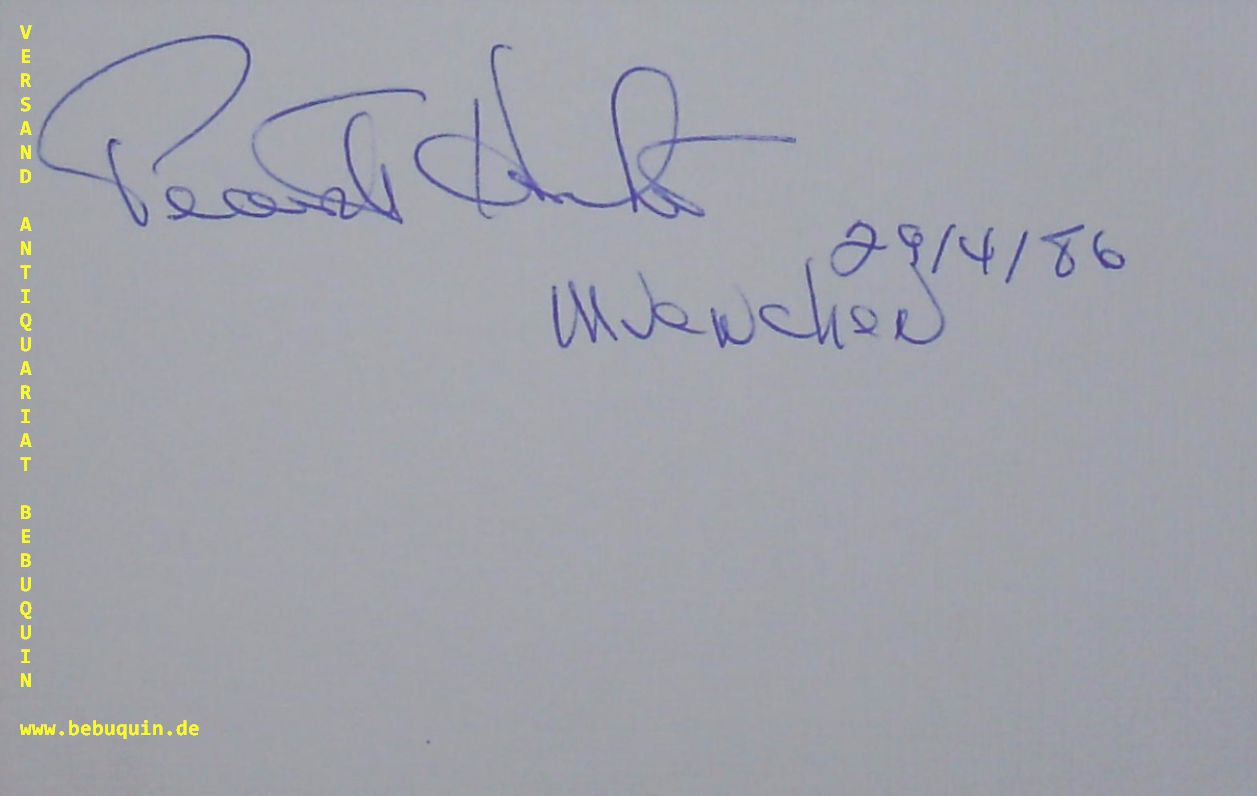 JAZZ.– HUCKO, Peanuts (Saxophonist): eigenhändig signierte und datierte Autogrammkarte. München (Philharmonie), 29.4.1986. 8 x 12,5 cm. Karteikarte.