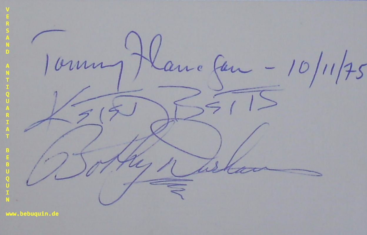 JAZZ.– DURHAM, Bobby (Schlagzeuger) + FLANAGAN, Tommy (Pianist) + BETTS, Keter (Bassist): eigenhändig signierte und datierte Autogrammkarte. München (Kongressaal), 10.11.1975. 8 x 10,5 cm. Karteikarte