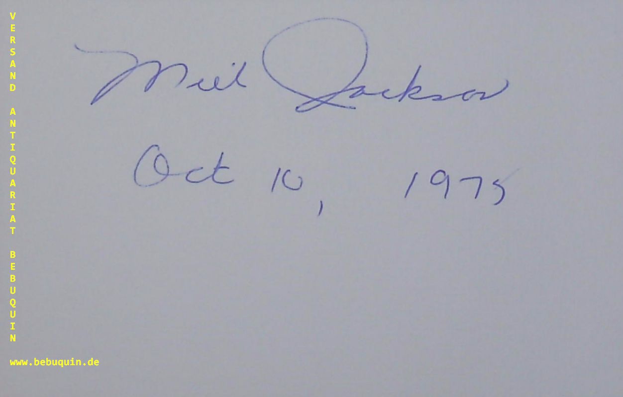 JAZZ.– JACKSON, Milt (Vibraphonist): eigenhändig signierte und datierte Autogrammkarte. München, 10.10.1975. 8 x 12,5 cm. Karteikarte.
