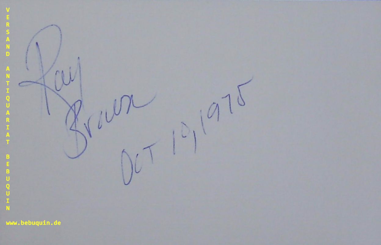 JAZZ.– BROWN, Ray (Bassist): eigenhändig signierte und datierte Autogrammkarte. München (Kongressaal), 10.10.1975. 8 x 12,5 cm Karteikarte. Ray Brown (* 13. Oktober 1926 in Pittsburgh, Pennsylvania; † 2. Juli 2002 in Indianapolis, Indiana, eigentlich Raymond Matthews Brown) war ein US-amerikanischer Jazz-Bassist. (Wikipedia)