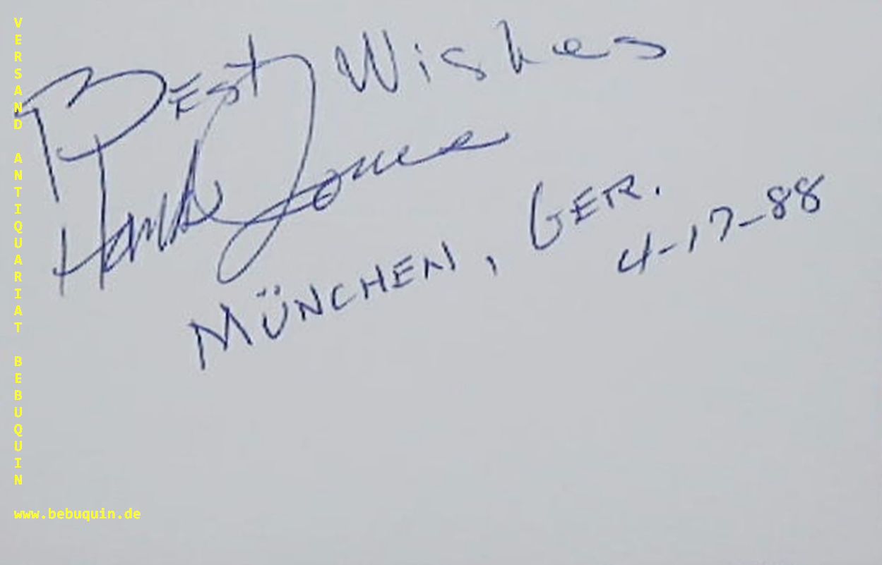 JONES, eigenhändig signierte und datierte Autogrammkarte: "Best Wishes".