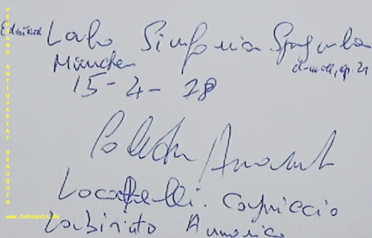 ACCARDO, Salvatore (Violinist, Dirigent): eigenhändig signierte und datierte Autogrammkarte mit längerem italienischen Text München, 15.4.1978 8 x 12,5 cm. Karteikarte. Salvatore Accardo (* 26. September 1941 in Turin) ist ein italienischer Violinist und Dirigent. (Wikipedia)