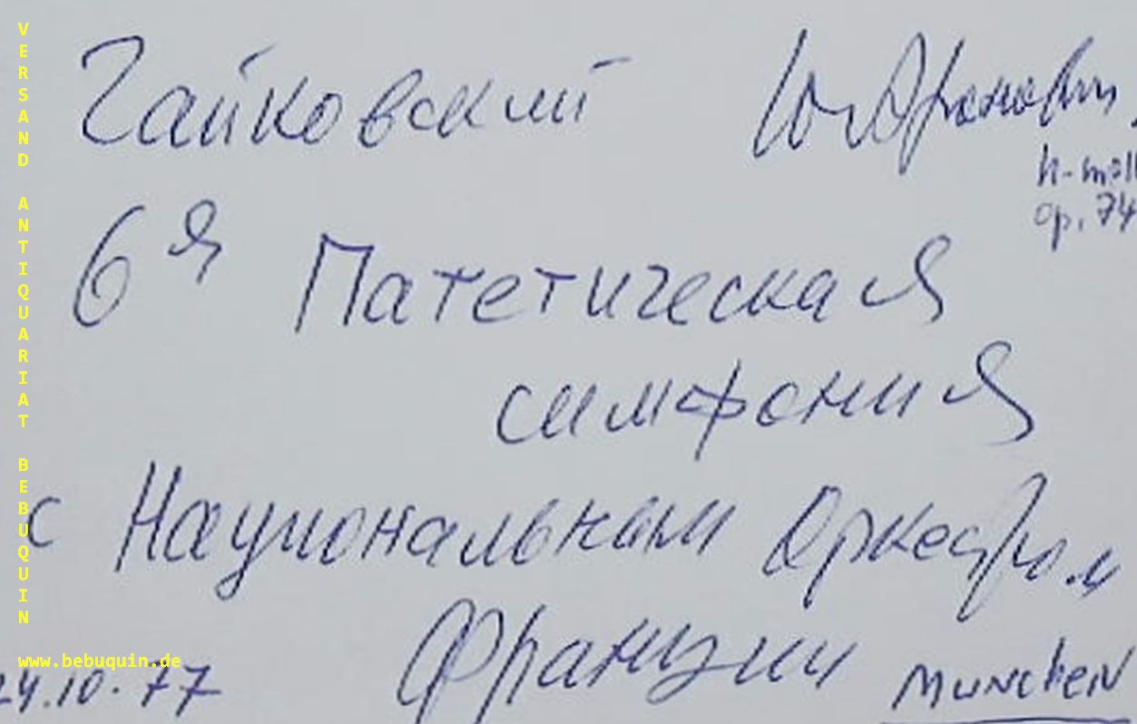 AHRONOVISCH, Yuri (Dirigent): eigenhändig signierte und datierte Autogrammkarte. München (Philharmonie), 24.10.1977. 8 x 12,5 cm. Karteikarte. Juri Michailowitsch Aronowitsch (* 13. Mai 1932 in Leningrad; † 31. Oktober 2002 in Köln) war ein israelischer Dirigent russischer Herkunft. (Wikipedia)