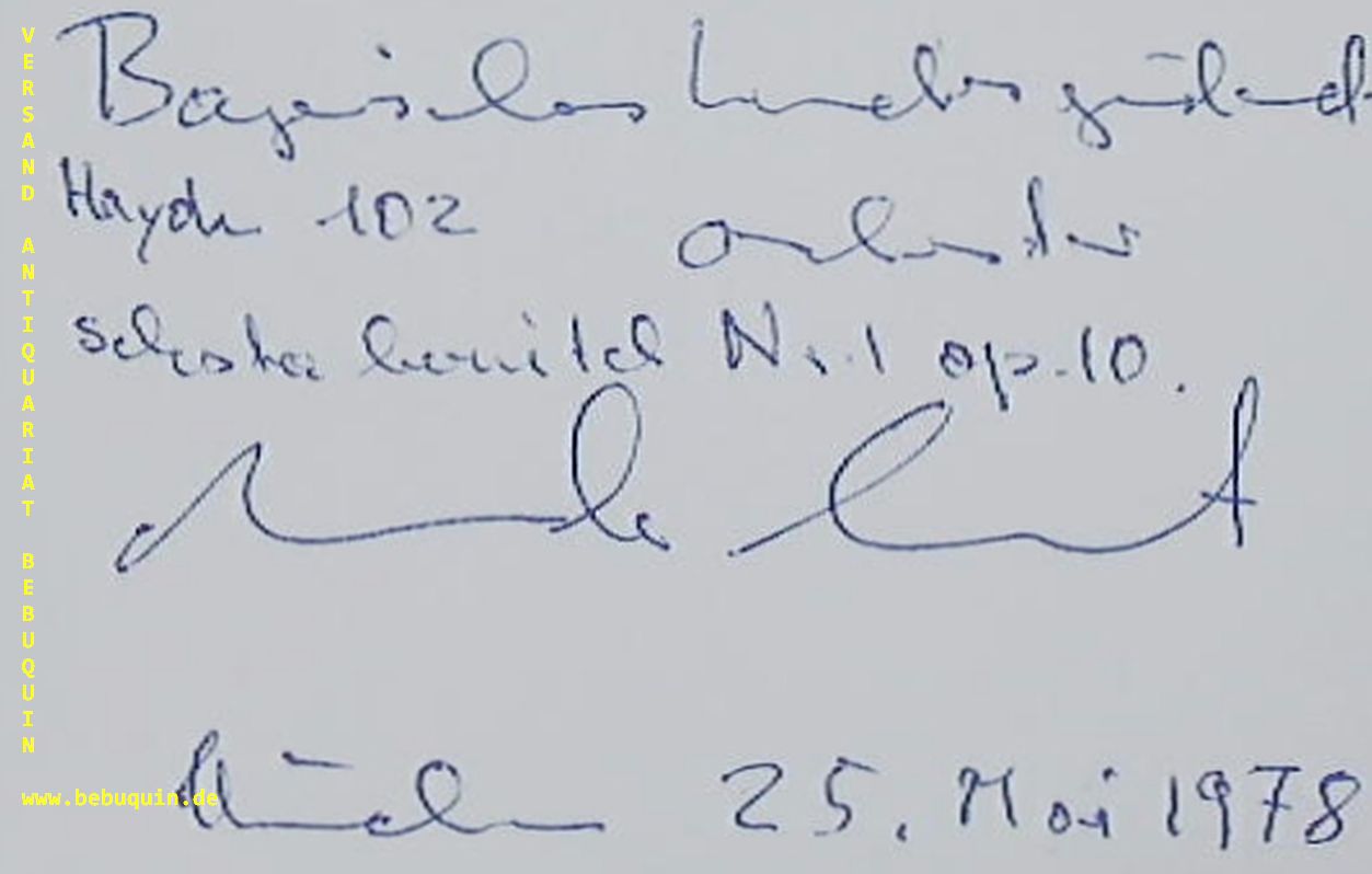 ALBERT, Werner Andreas (Dirigent): eigenhändig signierte und datierte Autogrammkarte. München (Herkulessaal), 25.5.1978. 8 x 10,5 cm. Karteikarten Werner Andreas Albert (* 10. Januar 1935 in Weinheim; † 10. November 2019 in Brisbane) war ein deutscher Dirigent. (Wikipedia)