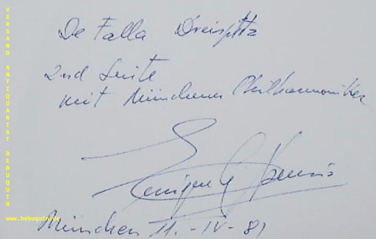 ASENSIO, Enrique Garcia (Dirigent): eigenhändig signierte und datierte Autogrammkarte. DE falla Dreispitz 2nd Suite mit Münchener Philharmonikern. München (Philharmonie), 11.4.1981. 8 x 10,5 cm. Karteikarte. Enrique García Asensio (* 22. August 1937 in Valencia) ist ein spanischer Dirigent und Musikpädagoge. (Wikipedia)