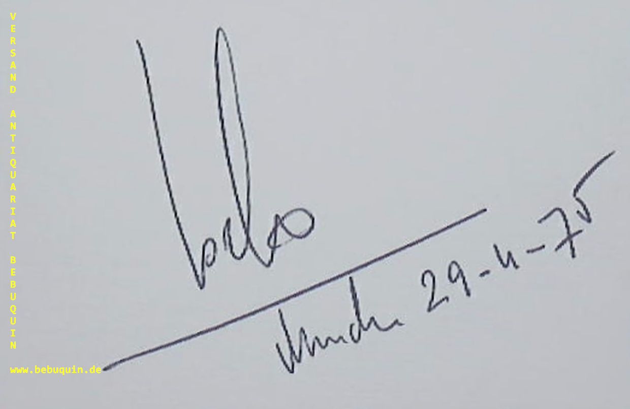 BEHREND, Siegfried (Gitarrist): eigenhändig signierte und datierte Autogrammkarte. München (Philharmonie), 29.4.1975. 8 x 12,5 cm. Karteikarte.