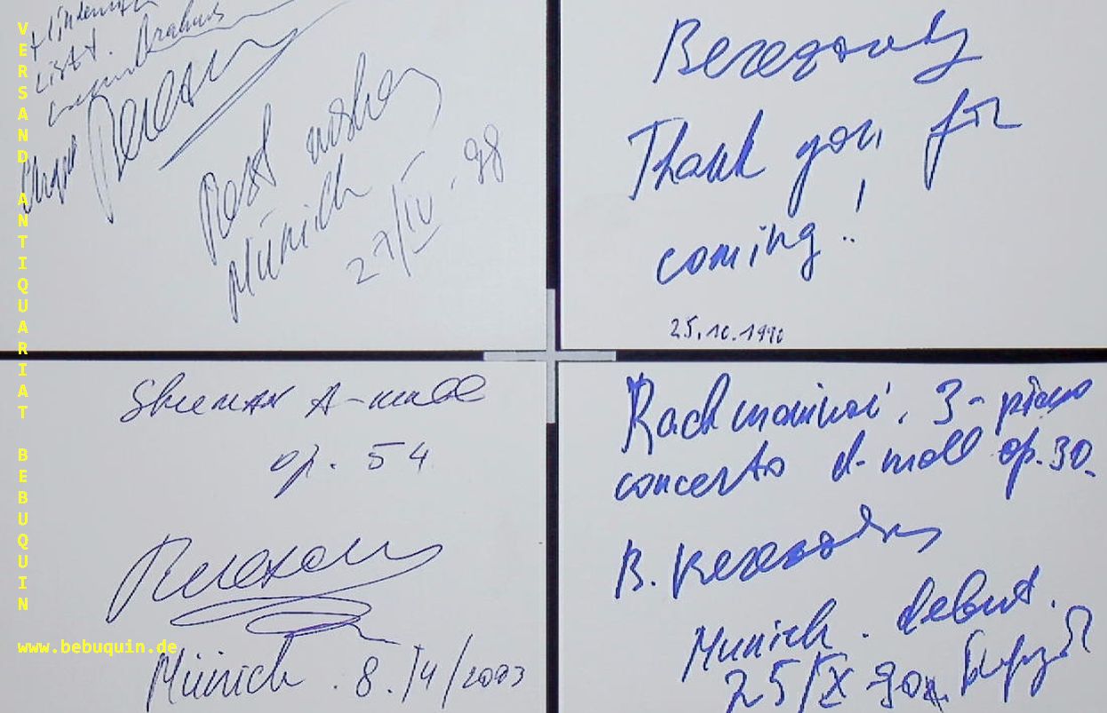 BEREZOVSKI, Boris (Pianist): 7 eigenhändig signierte und datierte Autogrammkarten. Alle nennen das Stück, eine ″ Thank you for coming!″ München (Philharmonie), 1989 – 2009. 8 x 12,5 cm. 7 Karteikarte. Boris Wadimowitsch Beresowski (* 4. Januar 1969 in Moskau) ist ein russischer Pianist. (Wikipedia)