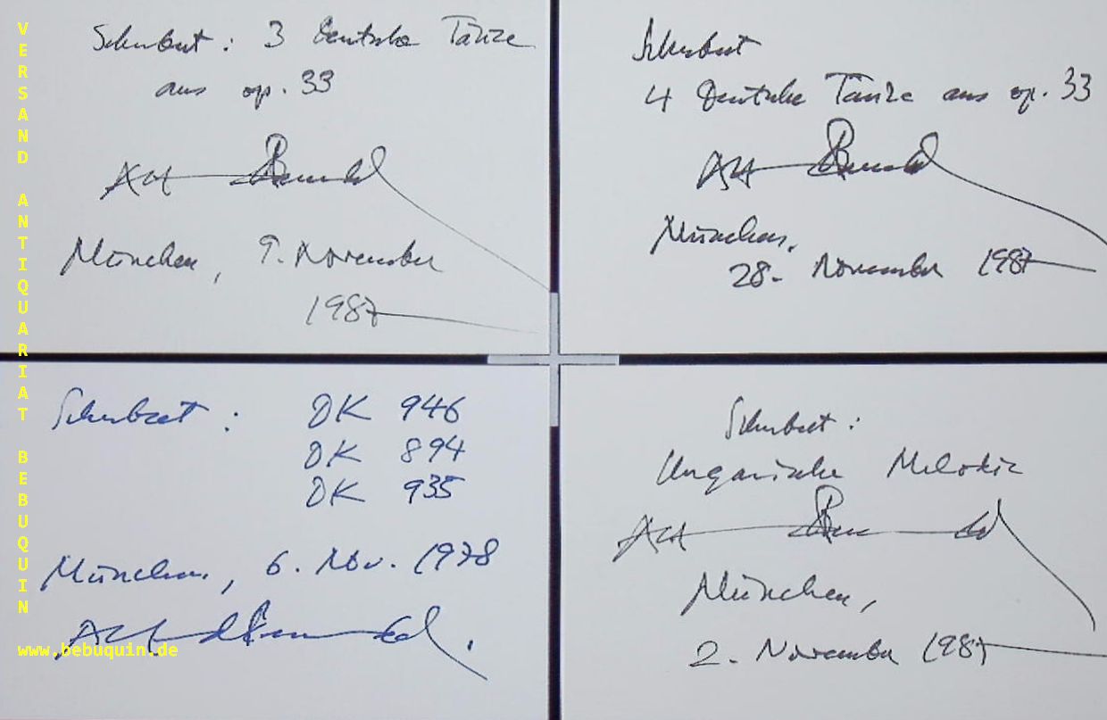 BRENDEL, 8 eigenhändig signierte und datierte Autogrammkarten: Schubert.