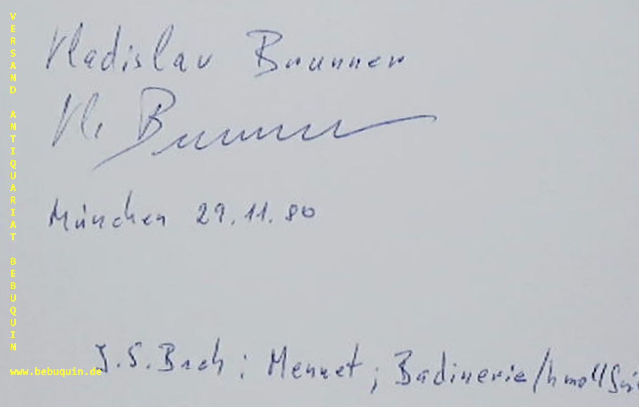 BRUNNER, Ladislaus (Flötist): eigenhändig signierte und datierte Autogrammkarte. München (Philharmonie), 29.11.1980. 8 x 12,5 cm. Karteikarte.